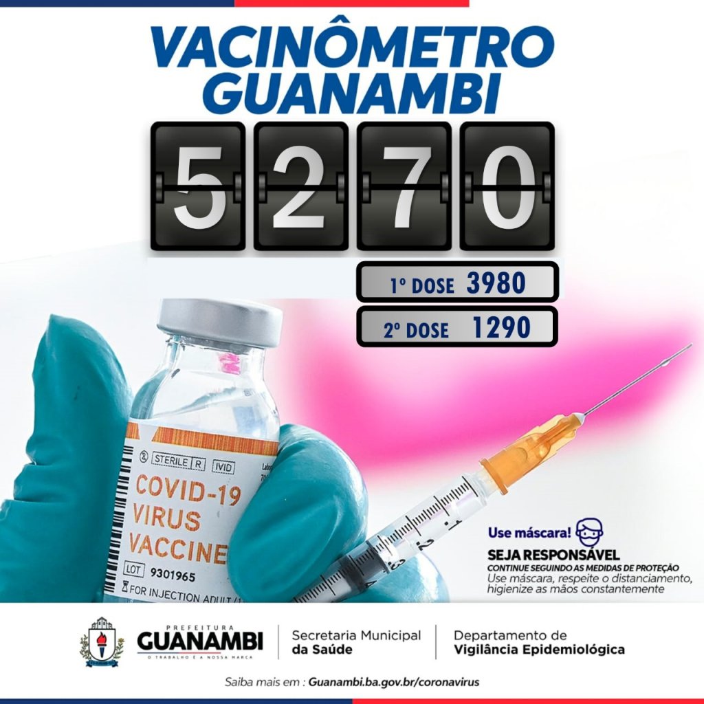 Ate o momento no município, 5270 pessoas foram vacinadas, 3980 na primeira dose e 1290 na segunda dose.